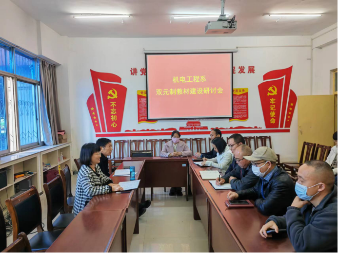 教材建设是“三教”改革的重要组成部分,是课程建设的重要内容之一,更是提高教学质量的基本环节,为做好教材建设工作,4月21日下午,机电工程系举行智能制造专业群双元制教材建设研讨会,会议由系主任冯凯主持,机电工程系骨干教师参加。