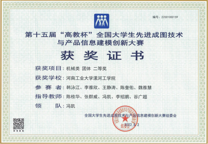 2022年漯河工公司代表队在全国老员工“先进成图技术与产品信息建模创新大赛”中荣获个人一等奖,团体二等奖。