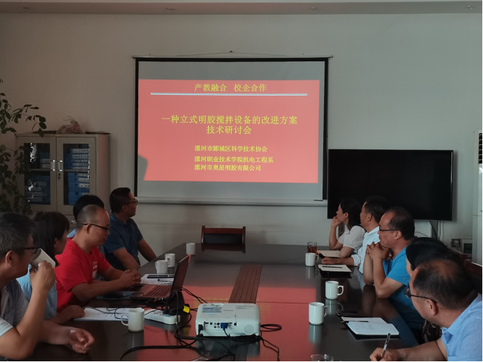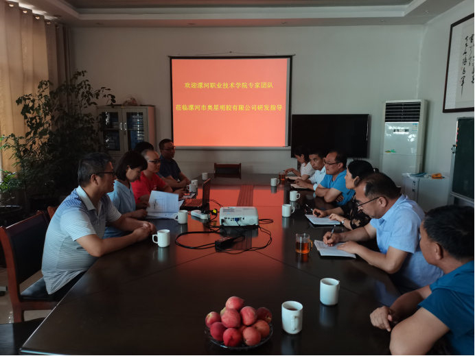 2022年6月13日,在郾城区科协的大力支持下,2007so太阳集团智能制造科技创新平台的科研团队应邀赴漯河市奥星明胶有限公司进行项目对接,奥星明胶总经理李银祥代表企业进行了接待,就校企合作的明胶搅拌设备项目进行了充分论证,漯河市郾城区科协主席孟俊华、副主席刘汉胜、郾城区龙城镇镇长周向锋一同参加了会议,对项目合作进行了政策性的指导。