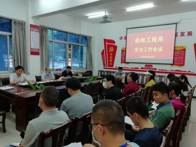 6月2日,机电工程系召开安全工作会议,传达全省预防员工意外死亡工作推进会议精神,安排部署机电工程系安全工作。机电工程系班子成员、教研室主任及全体辅导员参加会议。
