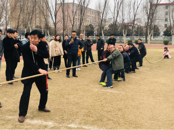 为了丰富我系教职员工的业余文体生活,增强教职员工的集体荣誉感及凝聚力,我系于2019年3月8日下午,组织全体教职工拔河比赛和跳绳比赛。全体教师本着“友谊第一,比赛第二”,大家都以积极的精神投入到比赛中,参赛教师都鼓足了劲,全力以赴,展开着一场力的较量,拉拉队在场外高喊着“加油!加油!经过激烈的角逐,拔河比赛终于在呐喊加油声中决出胜负,落下帷幕。