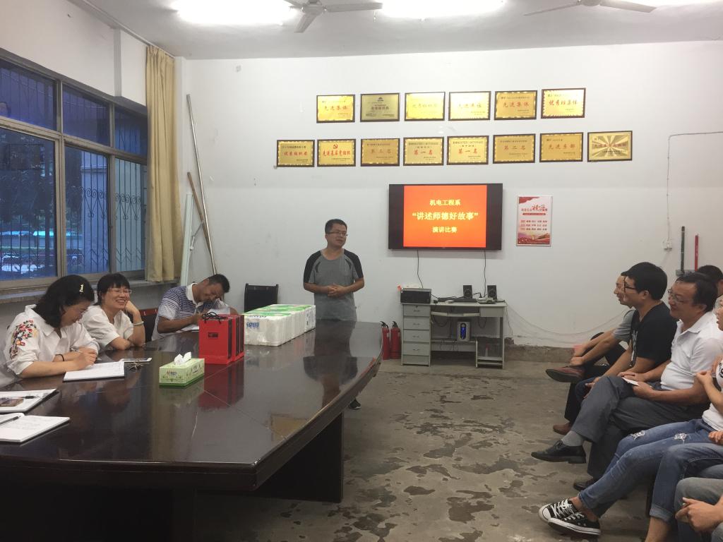 2018年9月12日,机电工程系在系会议室举行教师节“讲述师德好故事”主题演讲比赛。系领导班子和全体教师参加这次活动。