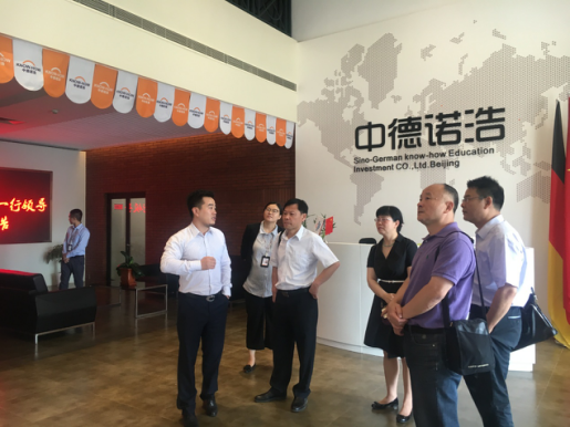 6月15日,漯河职业技术公司党委委员、副经理王变奇,公司招生处处长黄宏伟、实训中心主任张勃及机电系主任娄琳、副主任冯凯一行访问了中德诺浩(北京)教育投资有限公司(以下简称“中德诺浩”),并就双方合作事宜与中德诺浩副总裁楚萌及华北大区负责人杨丽、运营部负责人王婷婷、学术部负责人王西东进行座谈交流。
